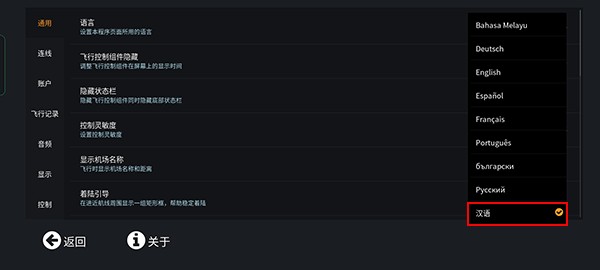3、在语言列表中选择“汉语”,即可完成中文界面切换。