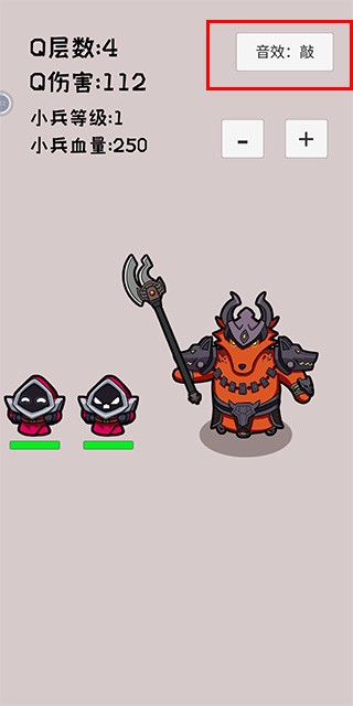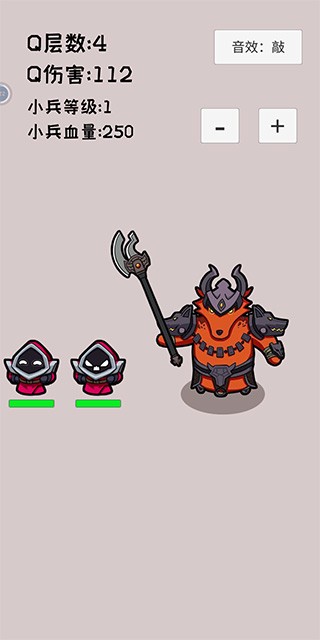3、通过下方的加减按钮调整小兵等级——小兵等级越高,血量越厚,但击败后获得的Q技能层数也越多,合理选择挑战难度是快速成长的关键。