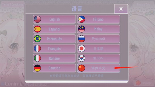2、在语言选项中选择“简体中文”;