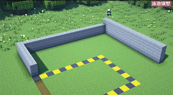 3、用白色混凝土围出游泳池轮廓,营造休闲区域。