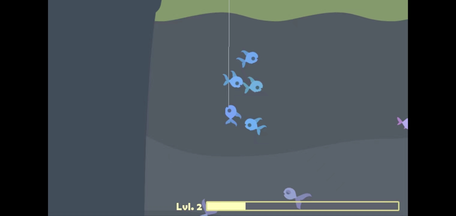 1. 进入游戏后,只需滑动屏幕即可将鱼钩抛入水中开始钓鱼。(若未成功抛入海中,可多尝试几次调整力度与角度)