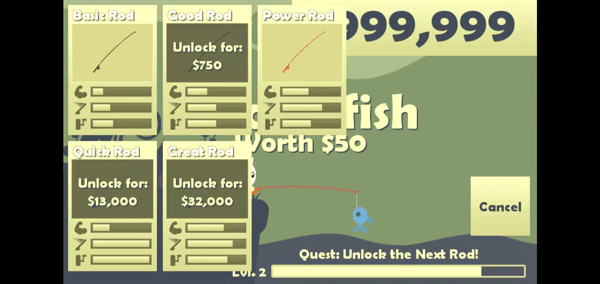 3. 不同种类的鱼对应不同金币价值,稀有鱼种收益更高,鼓励玩家探索更多水域。