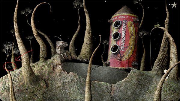 - 点击锅底开关加热,产生气泡。再点外部水龙头,四眼蜗牛前来饮水后晕倒。拾取其掉落的榔头,用以敲击机器人,顺利通关。