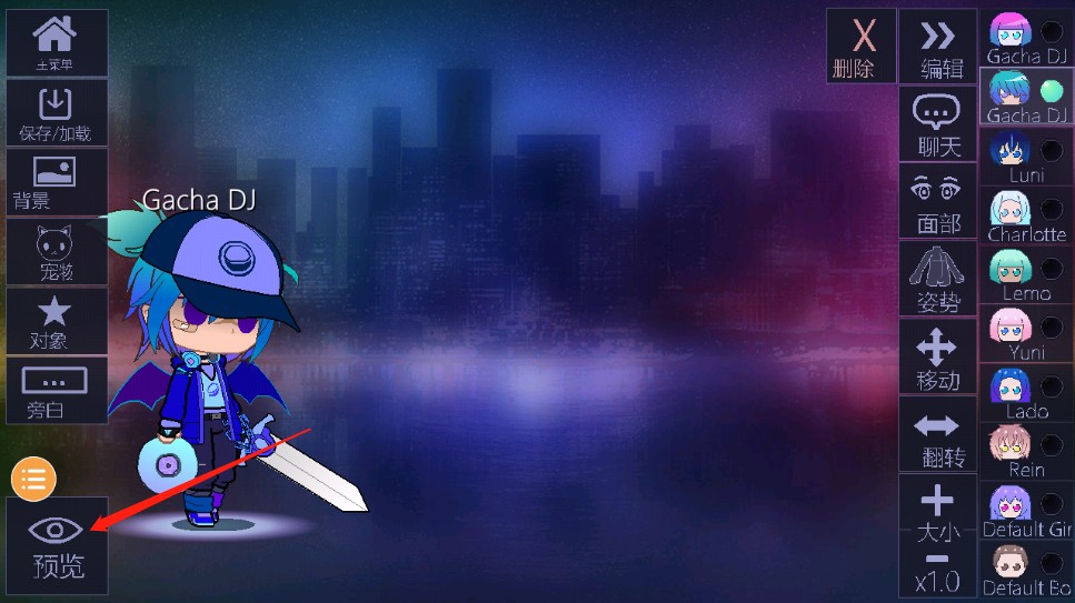 3、点击屏幕中的切换按钮,可快速更换当前编辑的角色;