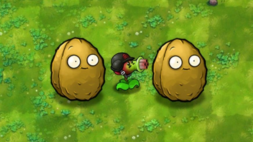 豌豆土豆雷:种植返还100阳光,基础攻速1秒;重做后攻速随僵尸接近提升(最高0.5秒),消失时向四周发射36颗豌豆。