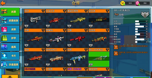5、专业级装备体系:收录AK47、M4、G36K、UZI、沙漠之鹰等经典枪械,搭配炫酷3D像素建模与现代科技武器,打造个性化火力配置。
