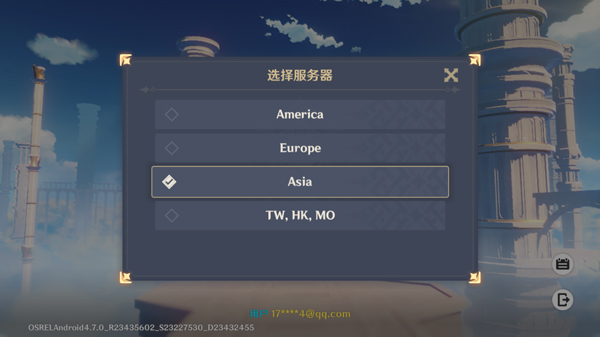 4、接着选择服务器区域,请选择“Asia(亚服)”,原神日服即包含在此选项中;