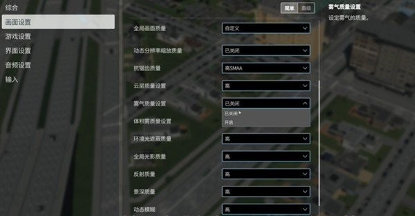 - 将“性能优先”切换为“帧率优先”,并在画面选项中关闭雾气质量。