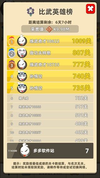 重要提示:奖励依据你所达到的最高关卡数结算,与具体名次无关。若结算时未收到奖励,请稍等片刻或尝试切换网络。