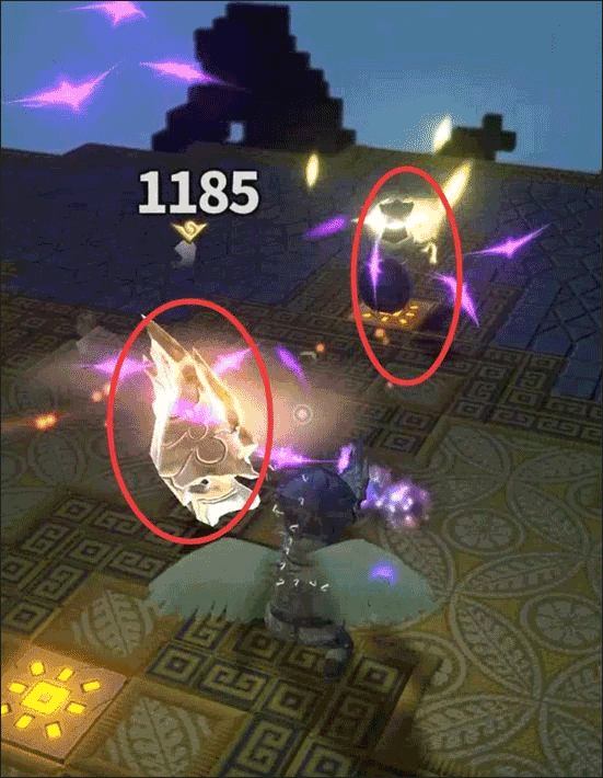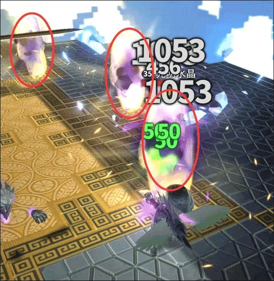 场地中共有4个水晶,击碎后会召唤小怪“君王空洞骑士”。其普通攻击与光球炸弹伤害均在900左右,威胁不小。