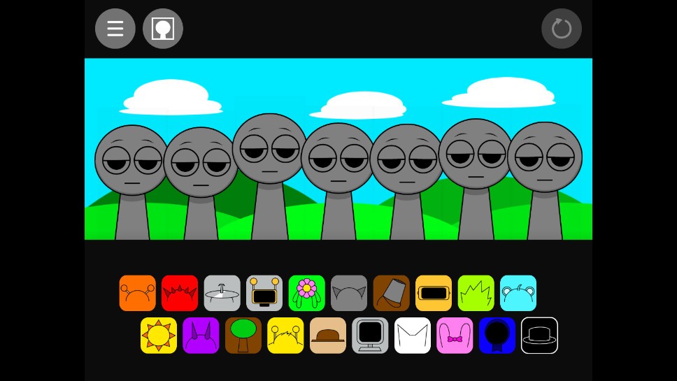 节奏盒子sprunki原版是一款风格怪诞又充满创意的音乐互动手游,采用独特的诡异涂鸦美术风格。游戏中一排排造型奇特的小人整齐排列,每位角色下方都配有丰富的装饰道具——这些看似普通的贴纸实则都是音符元素。玩家只需将装饰物拖拽至小人身上,即可触发不同的声音效果;当装扮完成后,角色们会诡异地张开嘴巴,共同吟唱出由你亲手“编排”的旋律,带来既新奇又魔性的视听体验。