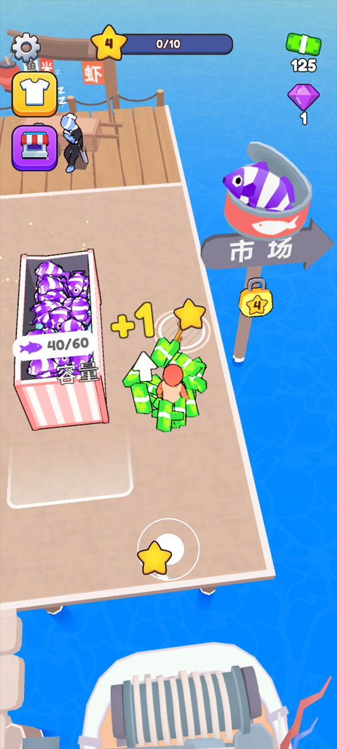 等级1:手动出售捕获的鱼类换取钞票。当资金足够时,可雇佣员工代为售鱼,解放双手。