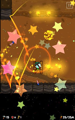 4、若挖出炸药,它会自动引爆并清除周围土块;若获得电钻,则会持续向下自动挖掘,大幅减少手动操作。