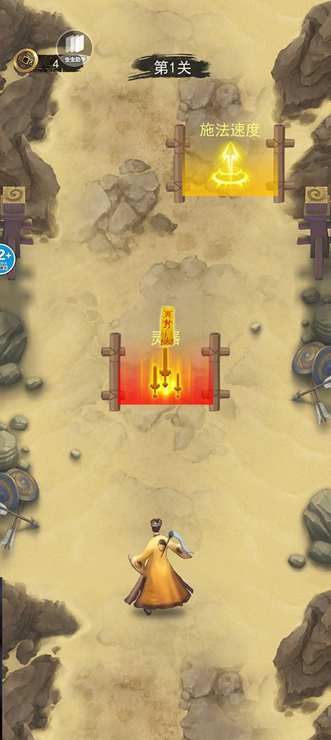 2、正式开始冒险后,需主动拾取地图上散落的各类法器,持续提升自身实力,操作方式仍为左右滑动屏幕;