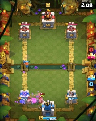- 把握墓园奇袭时机:当敌方沉底高费卡牌导致费用短缺时,立即以女武神或寒冰法师为前排吸引火力,随后在防御塔旁释放墓园,并辅以毒药或冰冻,打出致命一波。
