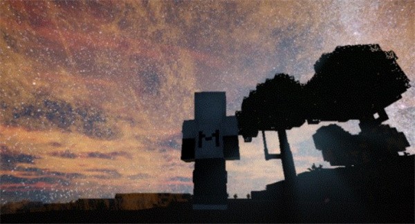 为探明真相,切换至创造模式并设置时间为夜晚,开启光影效果后,一幕震撼场景赫然显现——