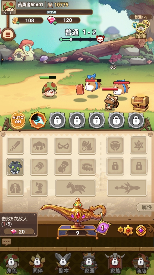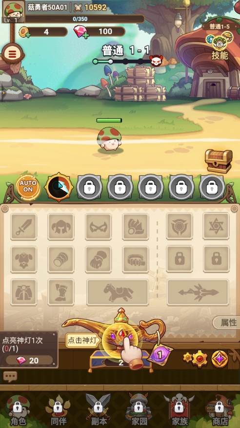 - 从神灯中获取新装备,并为你的小蘑菇穿戴;