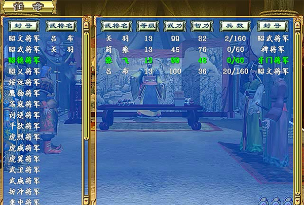 随后对吕布进行多次离间(约8次),即可成功招降。吕布不仅补齐第五人名额,其高武力值还能大幅提升比武胜率。但建议招降后立即关闭无限政令,以免影响游戏平衡与乐趣。