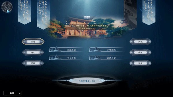 2. **道心五问选择**:依次选择“神明之府”、“大道无情”、“扩以养智”、“阴阳成象”、“无为证道”,最终可获得“天道地人”这一强力命格组合,对后期修炼有显著加成。