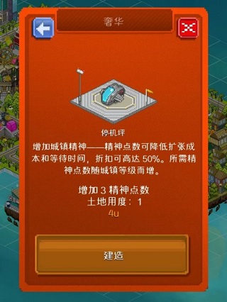 装饰物则提升“精神点数”,该数值越高,商店消费折扣越大,建造与升级所需时间越短。