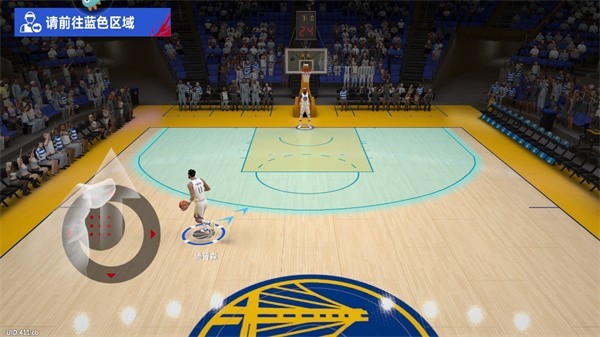 2、游戏内置详细的新手指引流程,帮助玩家快速上手。左侧屏幕区域为虚拟摇杆,用于控制球员移动。