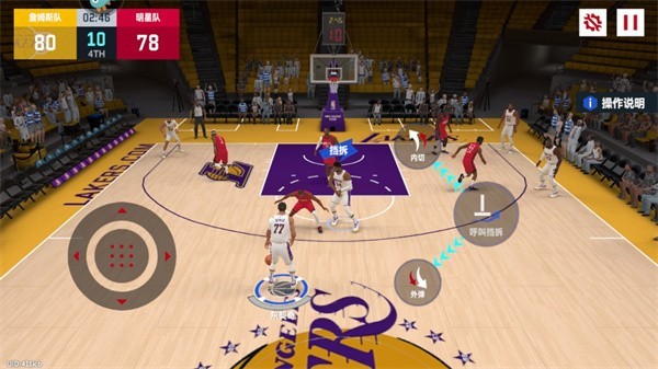 4、比赛中可灵活运用战术配合,例如呼叫队友挡拆后选择外弹投射或内切突破,亦可自主出手或分球给空位队友,实现多样化进攻组合。