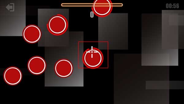 在主模式中,屏幕中央会随机出现多个红色靶标,玩家需使用右侧虚拟摇杆控制准星移动,左侧按钮完成射击,快速准确击中目标以获得高分。