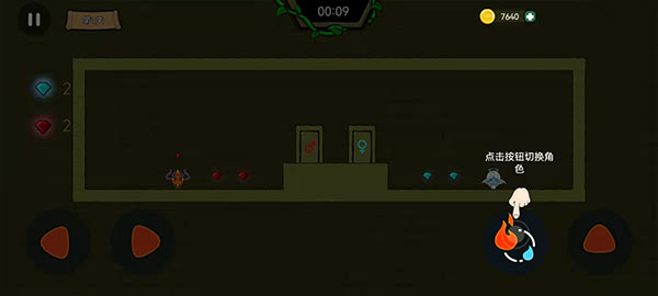 - 在单机模式下,点击右下角的切换按钮,即可在火娃与水娃之间自由切换,一人操控两个角色完成任务。