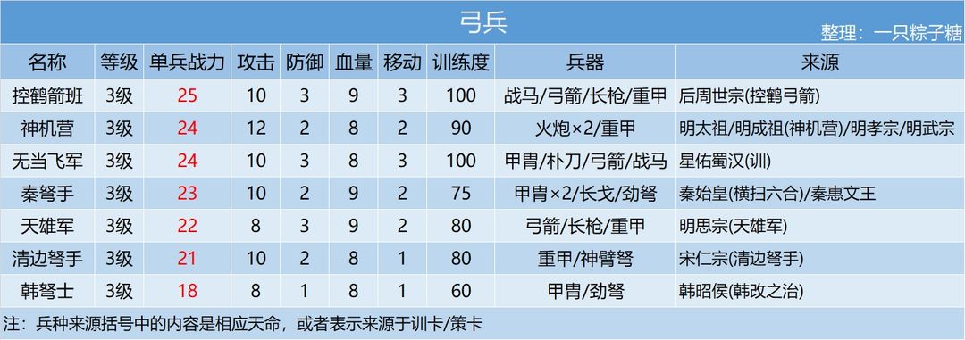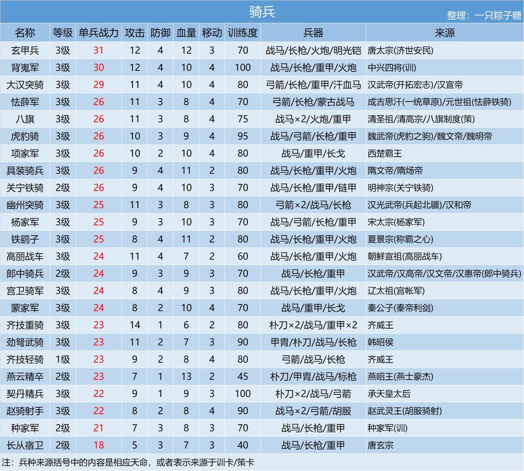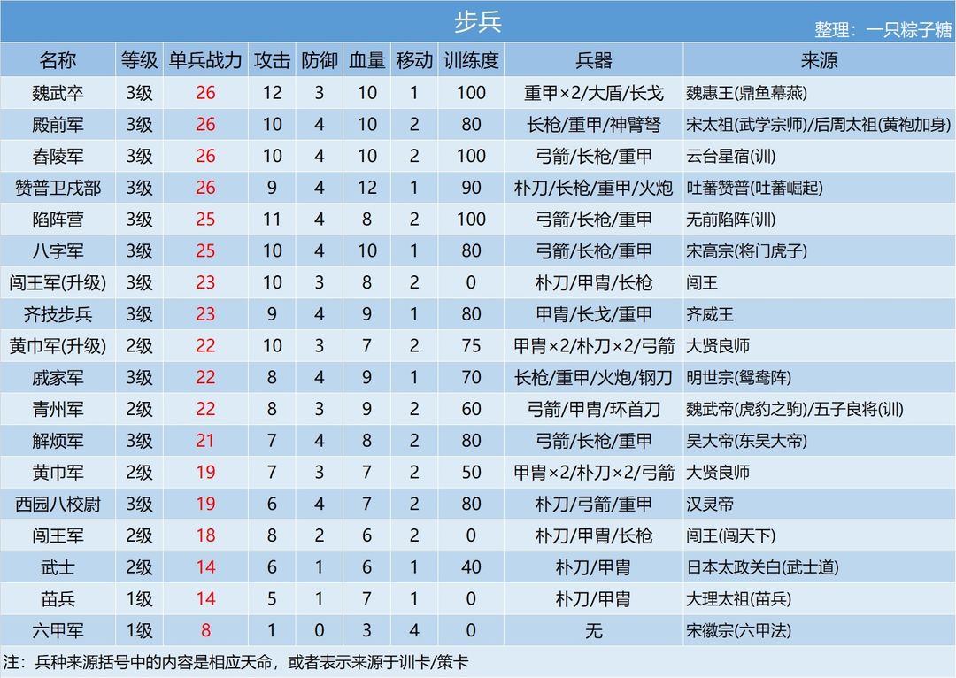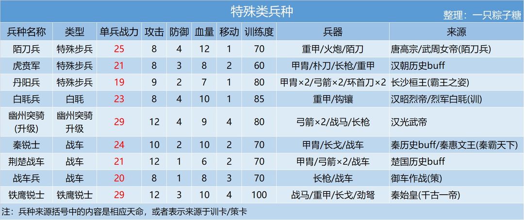 全兵种属性一览