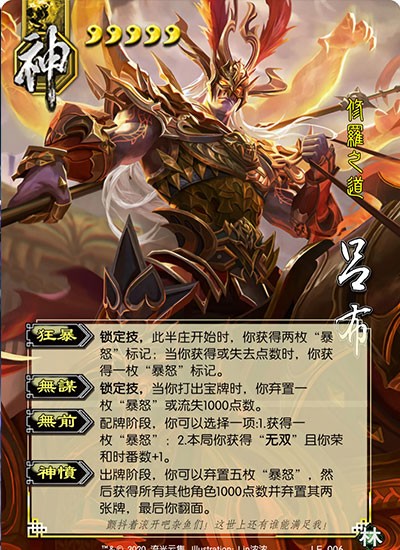 然而,在神吕布发起愤怒之后,你会意识到什么是将军。首先,所有角色都会造成一点伤害,然后放弃装备区的所有牌,然后放弃四张牌。基本上,所有的将军都会被剥夺。这时,神吕布的价格再次集中(8人场),陷入循环。