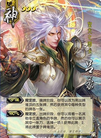 就技能而言,神吕蒙最大的特点就是摸牌。一般来说,他至少摸三张牌。如果他幸运的话,他可以摸四张牌。然而,在《三国杀》中,有很多武将增加了手牌。这四张牌不多,徐友、留赞、抑授、张松,哪一张不能过两张牌,再加上两张牌,神吕蒙没有太大优势。