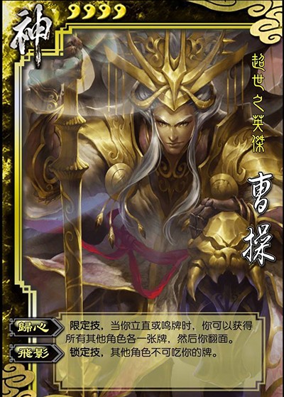 在8人场,神曹操一点伤就能拿到7张牌。虽然翻过来了,但是自带的。+马的属性可以保证神曹操的存活率。与神吕布相比,神曹操的技能触发简单,无需等待。