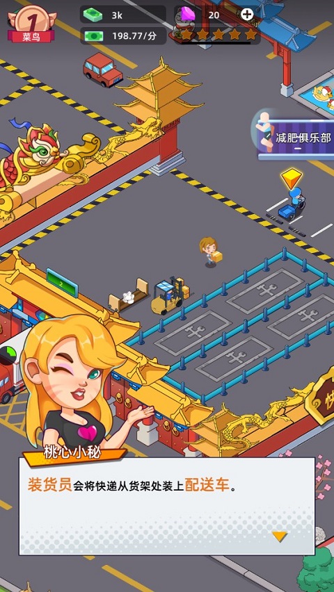 4、快递小哥登场!他们负责将驿站中的包裹亲手送到每位顾客手中,完成派送后系统会根据快递单价自动结算收入。
