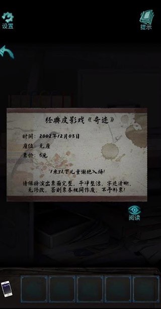 3、向东行进至走廊尽头,注意地面留有新鲜脚印,表明有人刚经过。虽然房门上锁,但进入后可获得【经典皮影戏《奇迹》】门票及一台老式游戏机;
