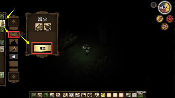 - 收集基础资源,如草、树枝、燧石、木材等。