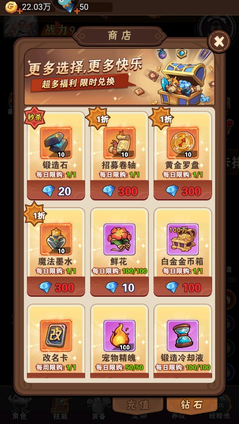 2. 当材料短缺时,每日可通过钻石限购渠道购买关键资源,建议每日必买,提前囤积。
