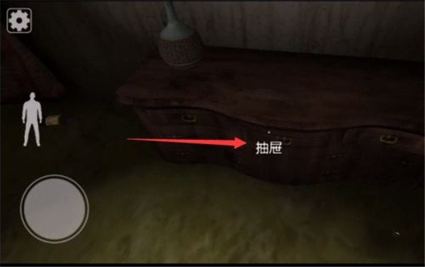 角色睁眼后,第一时间前往正前方的抽屉搜寻线索,随后沿屏幕右侧楼梯向上移动。
