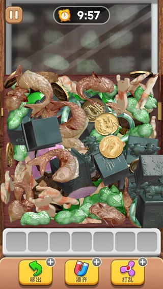 【灵活操作】支持点击或拖动两种方式选择物品,并将其放入消除栏完成操作。