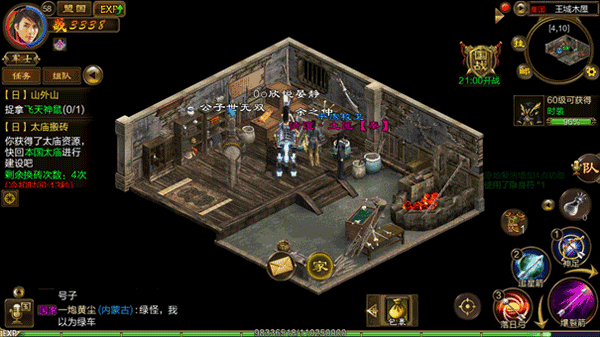 4、小木屋战术避险 太庙东北方设有传送点“小木屋”,进入后即达安全区,可等待换砖冷却结束,避免死亡损失银两。