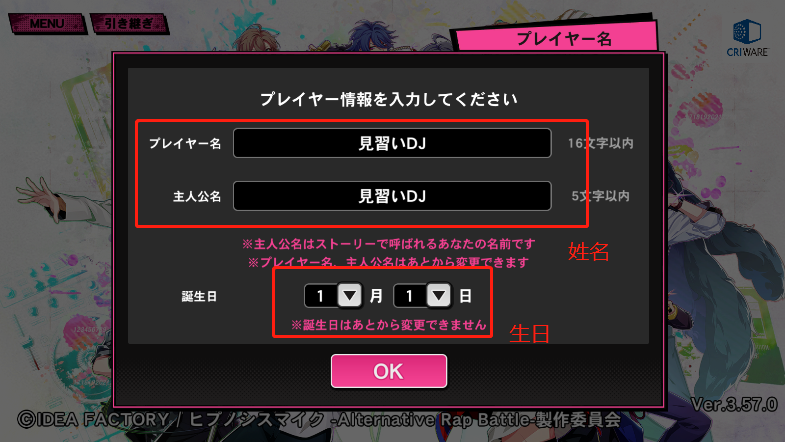 2. 输入你的游戏角色名与生日,注意点击【OK】后还需再次确认信息;