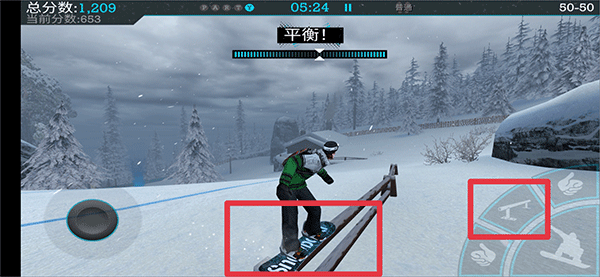 5. 正式开赛后,左侧虚拟轮盘控制角色左右移动及前进/刹车;右侧四个按钮对应不同特技动作指令。