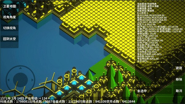 4、正式进入游戏后,你需要在当前星球上开采矿石、建造建筑,并通过科学经营推动整个星球的发展;