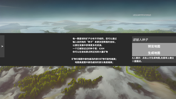 1、游戏初期默认加载“地球村”地图,资源随机生成。建议点击左上角生成地图后,切换至卫星视角,快速定位矿物富集区域;