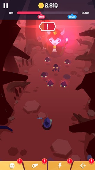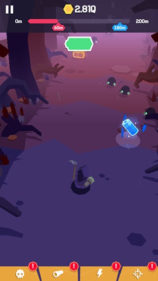 6、我们要做的就是消灭图中所有怪物,让自己走的更远,当被怪物碰到时,也就意味着游戏结束,这时候会结算你冒险的距离