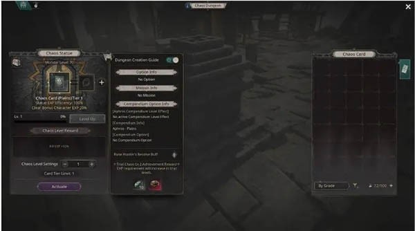 完成主线后,可在村庄的混沌石像处使用混沌卡片进入副本。支持单人或多人协作,组队仅需一张卡即可入场。