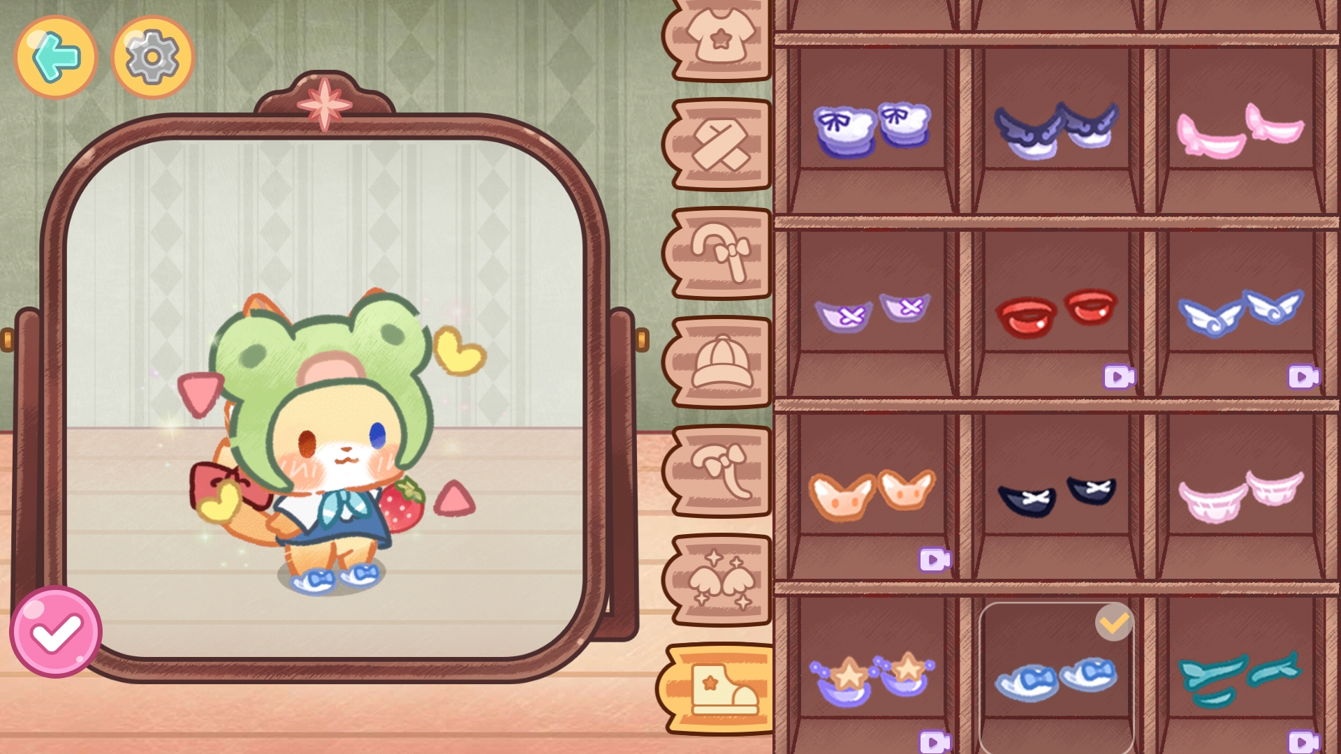 8、进入DIY界面,自由搭配猫咪的服装、帽饰、手持道具及出场特效,创造独一无二的形象。