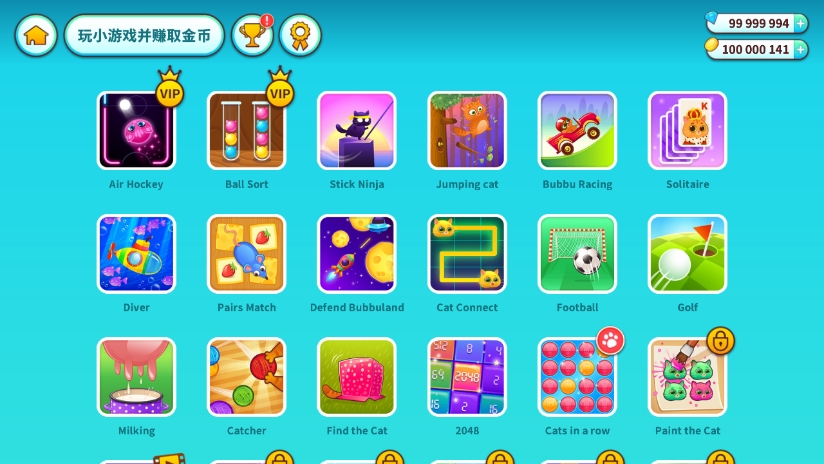 3. 趣味小游戏体系:内置30余款轻松有趣的迷你游戏,不仅增添娱乐性,还能稳定获取食物与金币,用于持续提升宠物生活质量。