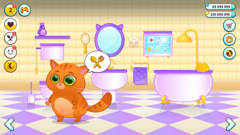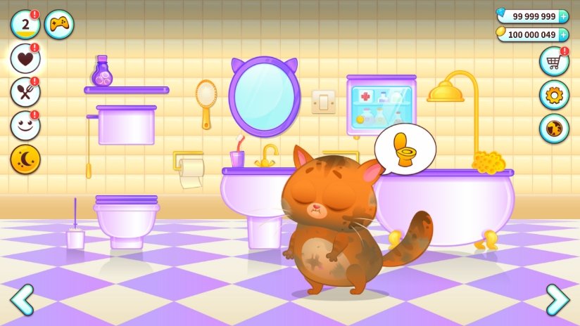 - 洗澡清洁护理:将脏兮兮的Bubbu放入浴池中,长按花洒出水,再点击旁边的沐浴球,即可为它彻底清洗干净。