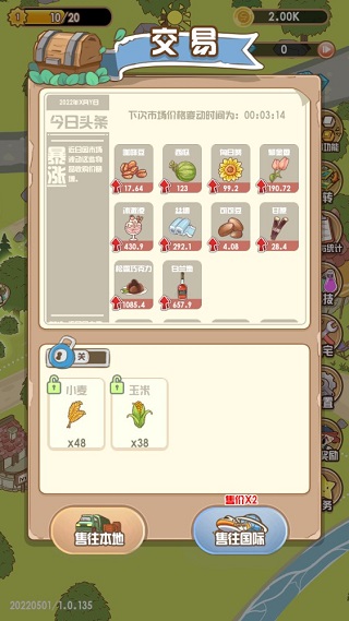 当作物成熟后,只需点击即可直接收获。若想开垦更多土地、解锁新种子,金币是必不可少的资源。那么,如何将收获的作物变现呢?