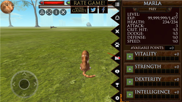 4. 深度成长体系:通过捕食、照顾家人或完成任务获取经验,提升猫咪等级,不仅增加生命值与攻击力,还能扩展背包容量,强化整体属性。